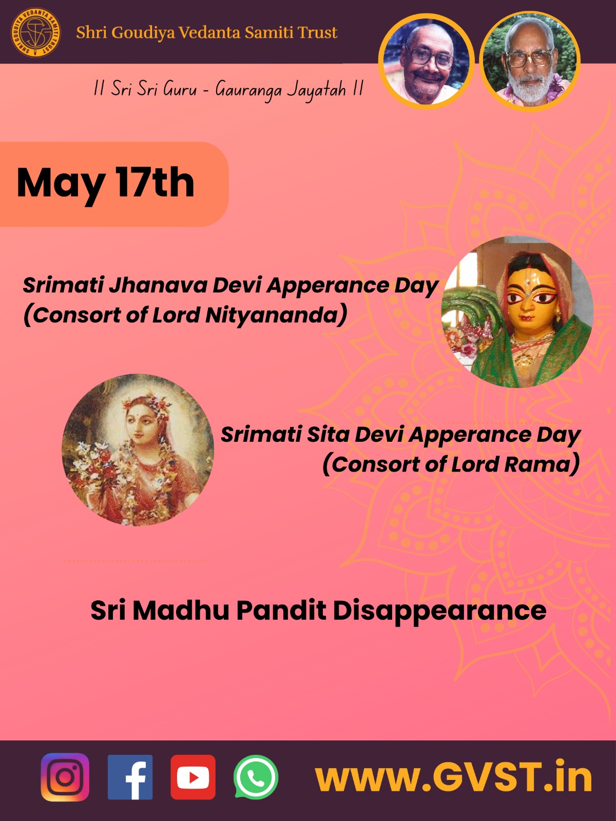 17th May, 2024 – Sri Jhanava Devi Appearance Day, Sita Devi Appearance Day & Madhu Pandit Disappearance Day