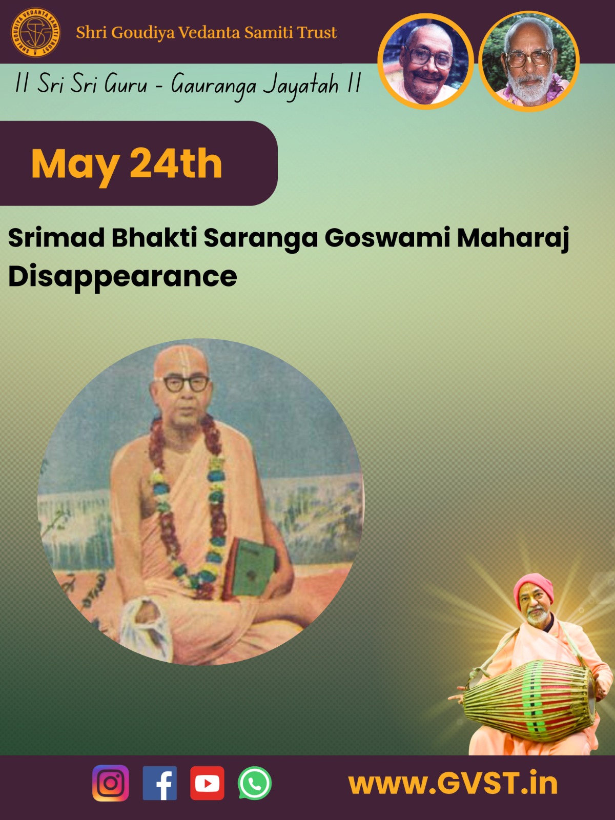 24th May, 2024- Srimad Bhakti Saranga Goswami Maharaja Disaaperance Day